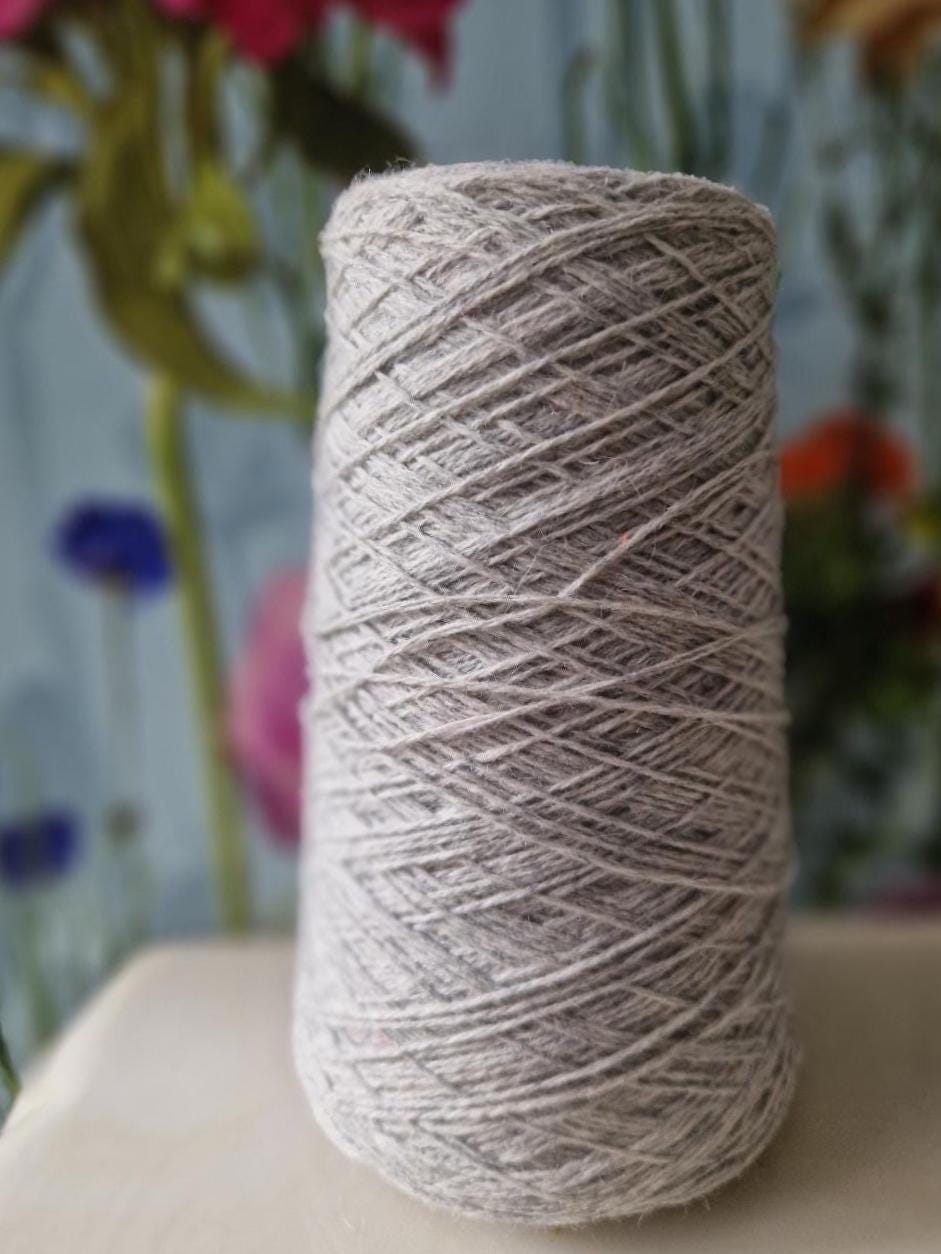 The colour is a beautiful soft grey melange, giving a timeless, understated look perfect for modern or rustic knitwear.