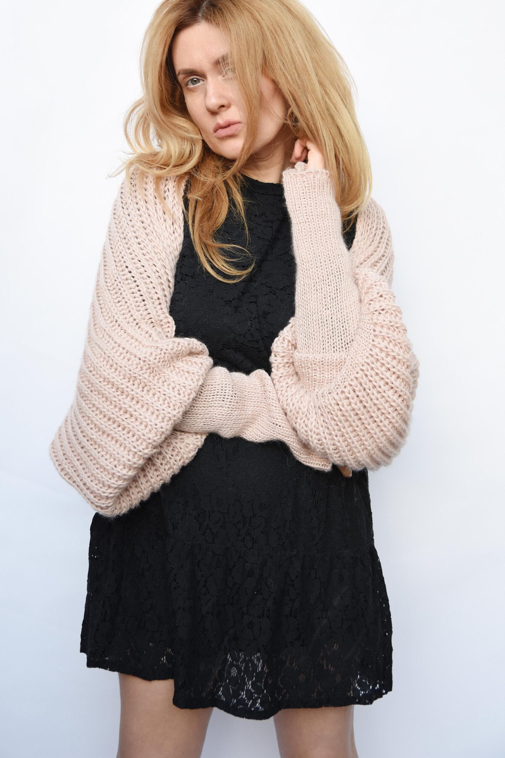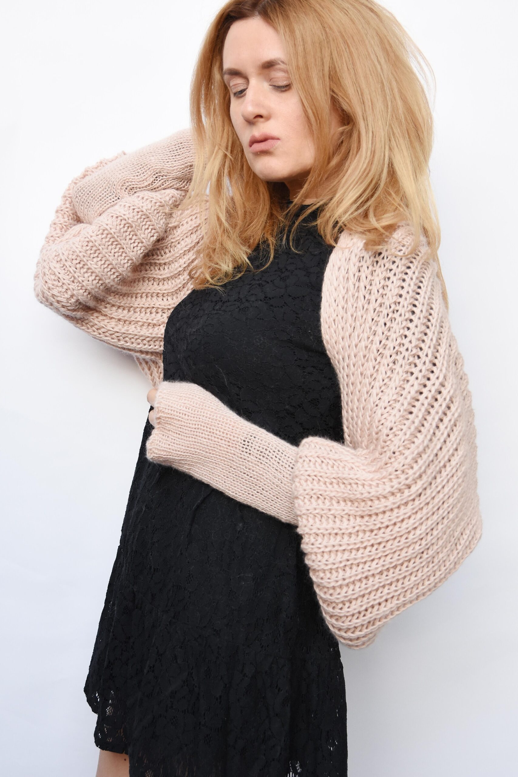 Puff sleeve Chunky knit oversized shrug Slouchy cardigan Rib knit shrug Scarf blush pink/nude