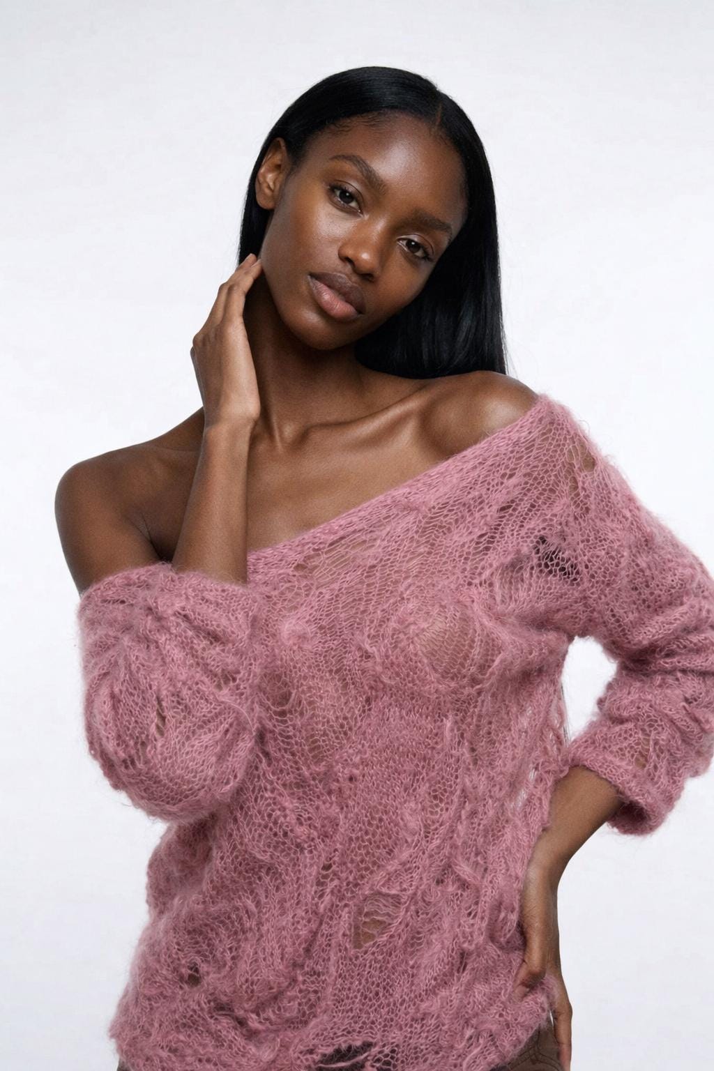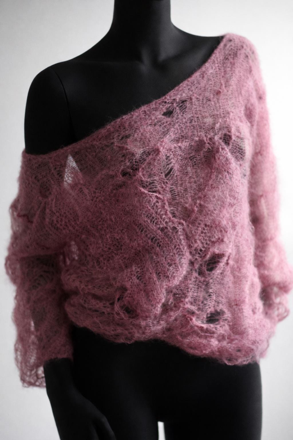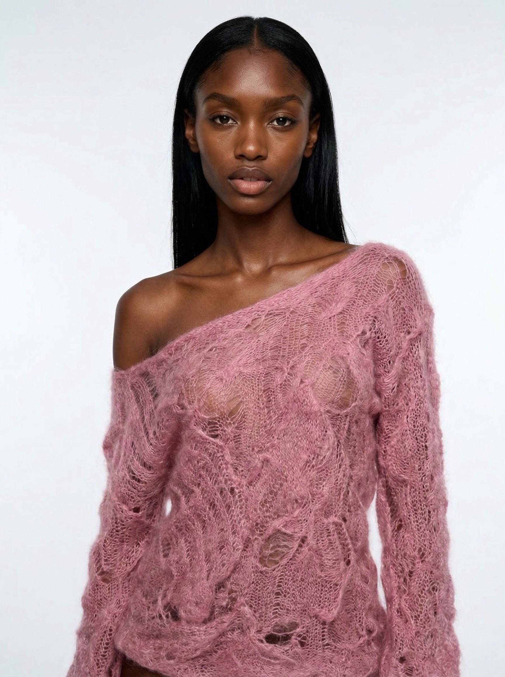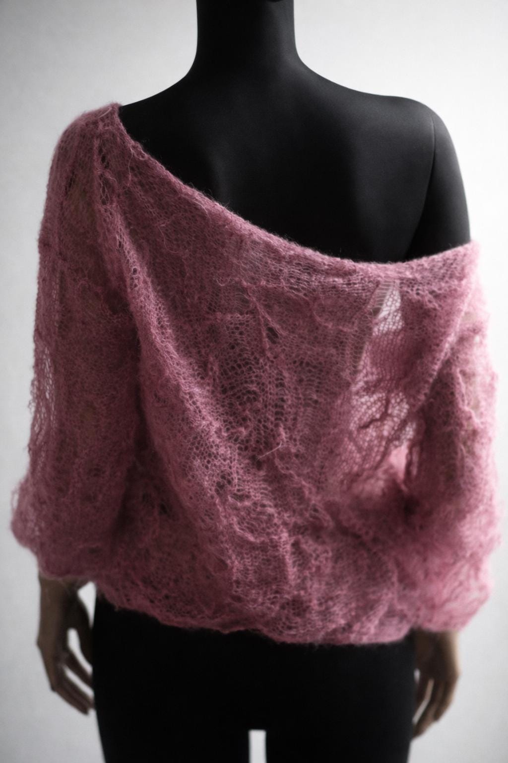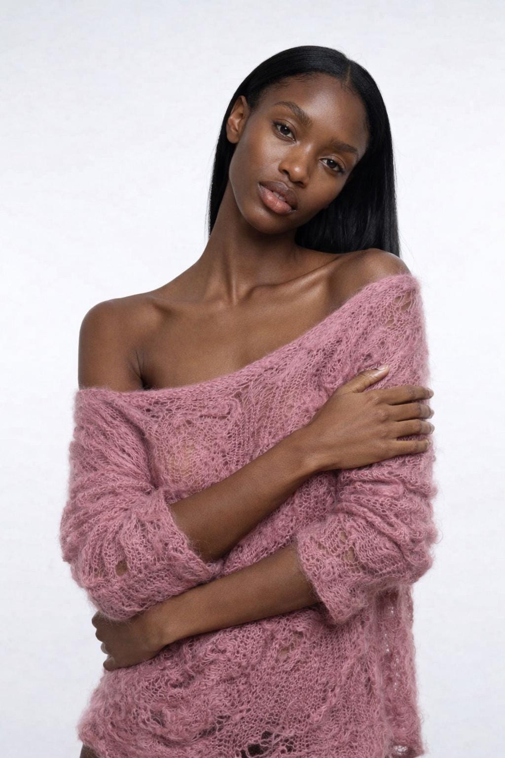 An expressive, avant-garde knit piece crafted from a luxurious silk and mohair blend, designed for those who are drawn to texture, lightness, and unconventional silhouettes.