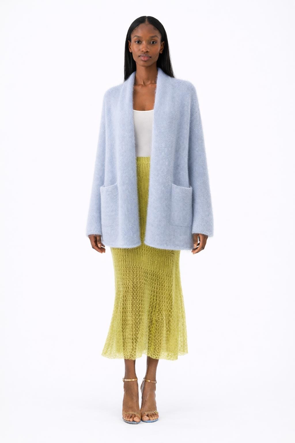 Mohair Silk Cardigan – Soft Blue Lightweight Knit